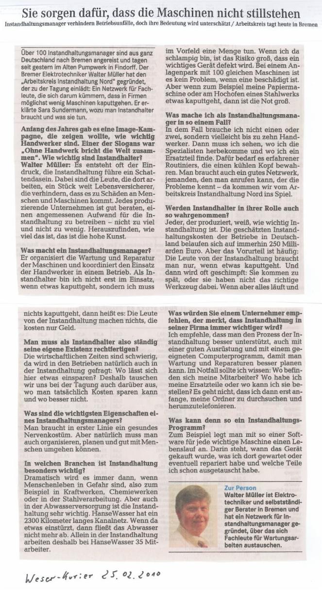 Bericht "Weser Kurier" vom 25.02.2010