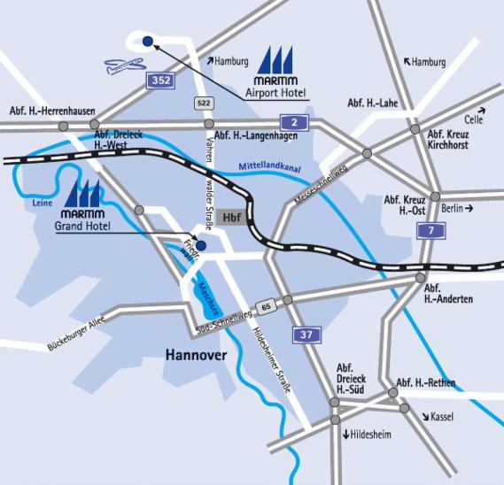 Das Maritim Airport Hotel liegt direkt am Flughafen Hannover, nur wenige Schritte von den Terminals A bis C entfernt. Die Autobahnen A 2 und A 7 sind in wenigen Fahrminuten zu erreichen. Der Flughafen ist über eine S-Bahn-Verbindung direkt an die Innenstadt, das Messegelände und den Hauptbahnhof angebunden.