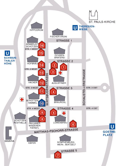 Sie finden das Festzelt "Heinz Wurst- und Hühnerbraterei" auf der Skizze unter der Nr. 10.